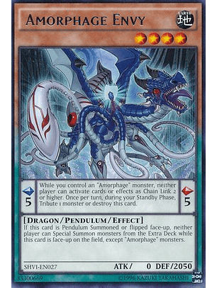 Si esta carta es Invocada por Péndulo o volteada boca arriba, ningún jugador puede Invocar monstruos de Modo Especial desde el Deck Extra mientras esta carta esté boca arriba en el Campo, excepto monstruos "Amórfago/a".