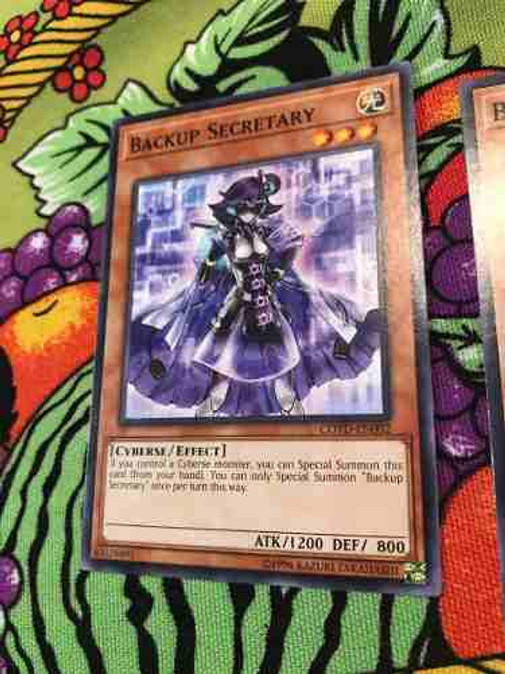 Si controlas un monstruo Ciberso, puedes Invocar esta carta de Modo Especial (desde tu mano). Sólo puedes Invocar de Modo Especial "Secretaria de Respaldo" una vez por turno de esta forma.