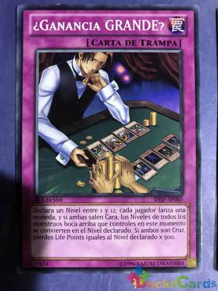 Declara un Nivel entre 1 y 12; cada jugador lanza una moneda, y si ambas salen Cara, los Niveles de todos los monstruos boca arriba que controles en este momento se convierten en el Nivel declarado. Si ambos son Cruz, pierdes Life Points iguales al Nivel declarado x 500.