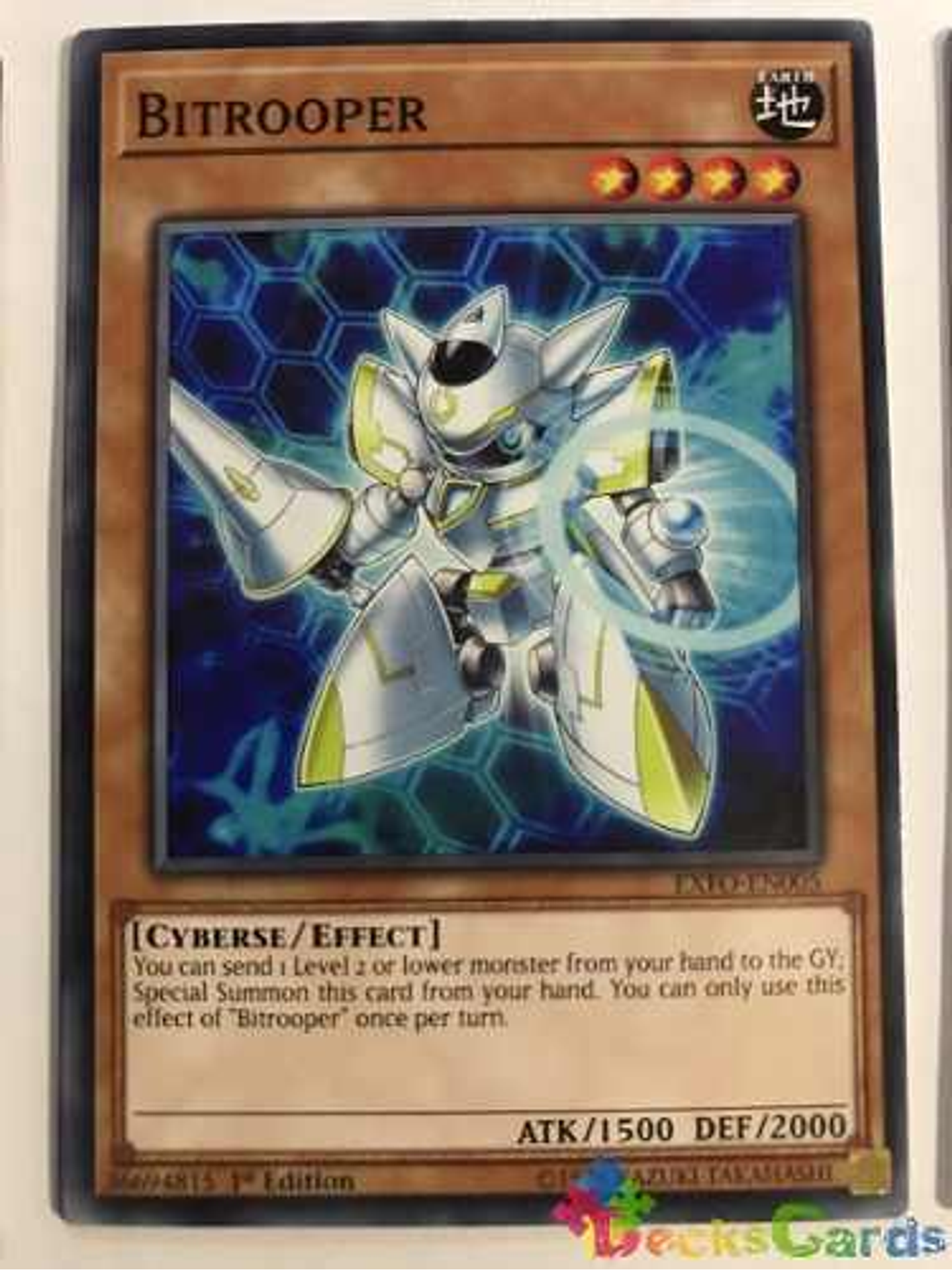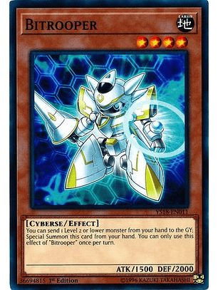 Puedes mandar al Cementerio 1 monstruo de Nivel 2 o menor en tu mano; Invoca esta carta de Modo Especial desde tu mano. Sólo puedes usar este efecto de "Bitsoldado" una vez por turno.