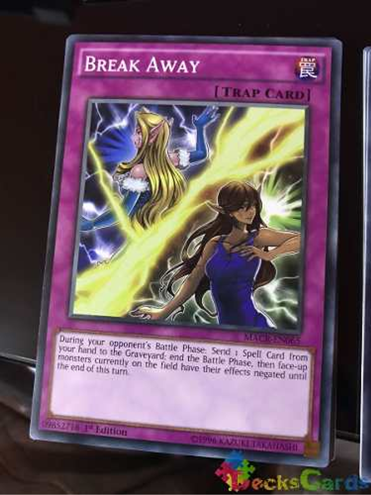 Durante la Battle Phase de tu adversario: manda al Cementerio 1 Mágica en tu mano; termina la Battle Phase, y después, hasta el final de este turno, los monstruos boca arriba en el Campo en este momento ven sus efectos negados.