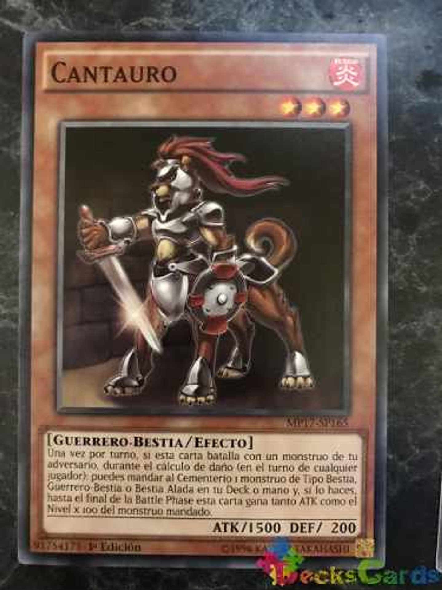 Una vez por turno, si esta carta batalla con un monstruo de tu adversario, durante el cálculo de daño (en el turno de cualquier jugador): puedes mandar al Cementerio 1 monstruo de Tipo Bestia, Guerrero-Bestia o Bestia Alada en tu Deck o mano y, si lo haces, hasta el final de la Battle Phase esta carta gana tanto ATK como el Nivel x 100 del monstruo mandado.