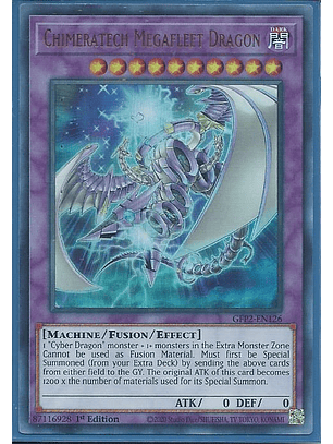 "Ciber Dragón" + 1+ monstruos MáquinaNo puede ser usado como Material de Fusión. Debe ser primero Invocado de Modo Especial (desde tu Deck Extra) mandando al Cementerio las cartas mencionadas arriba desde cualquier Campo. (No usas "Polimerización"). El ATK original de esta carta se convierte en 1000 x la cantidad de Materiales de Fusión usados para su Invocación de Modo Especial.