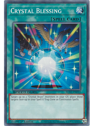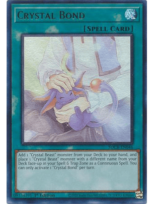 Selecciona hasta 2 monstruos "Bestia de Cristal" en tu Cementerio; pon esos objetivos boca arriba en tu Zona de Magia y Trampas como si fueran Mágicas Continuas.