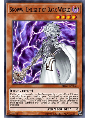 Si esta carta es Invocada de Modo Normal o Especial: puedes seleccionar 1 monstruo boca arriba que controle tu adversario; cámbialo a Posición de Defensa boca abajo. Si esta carta está en tu Cementerio (Efecto Rápido): puedes desterrar otras 7 cartas en tu mano, Campo y/o Cementerio; Invoca esta carta de Modo Especial.