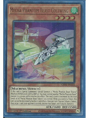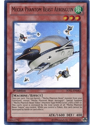 Cuando esta carta declara un ataque: Invoca de Modo Especial 1 "Ficha Mecha Bestia Fantasma" (Tipo Máquina/VIENTO/Nivel 3/ATK 0/DEF 0). El Nivel de esta carta se aumenta en la cantidad total de Niveles de todas las "Ficha Mecha Bestia Fantasma" que controles. Mientras controles una Ficha, esta carta no puede ser destruida en batalla o por efectos de cartas. Una vez por turno, durante el turno de cualquier jugador: puedes Sacrificar 1 Ficha, y después seleccionar 1 monstruo que controle tu adversario; cambia ese objetivo a Posición de Defensa boca arriba.