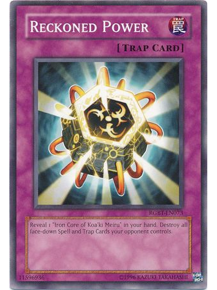 Muestra 1 "Núcleo de Hierro de Koa'ki Meiru" en tu mano. Destruye todas las Cartas Mágicas y de Trampa boca abajo que controle tu adversario.