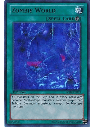 Todos los monstruos en el Campo y en los Cementerios se convierten en monstruos Zombi. Ningún jugador puede Invocar monstruos por Sacrificio, excepto monstruos Zombi.